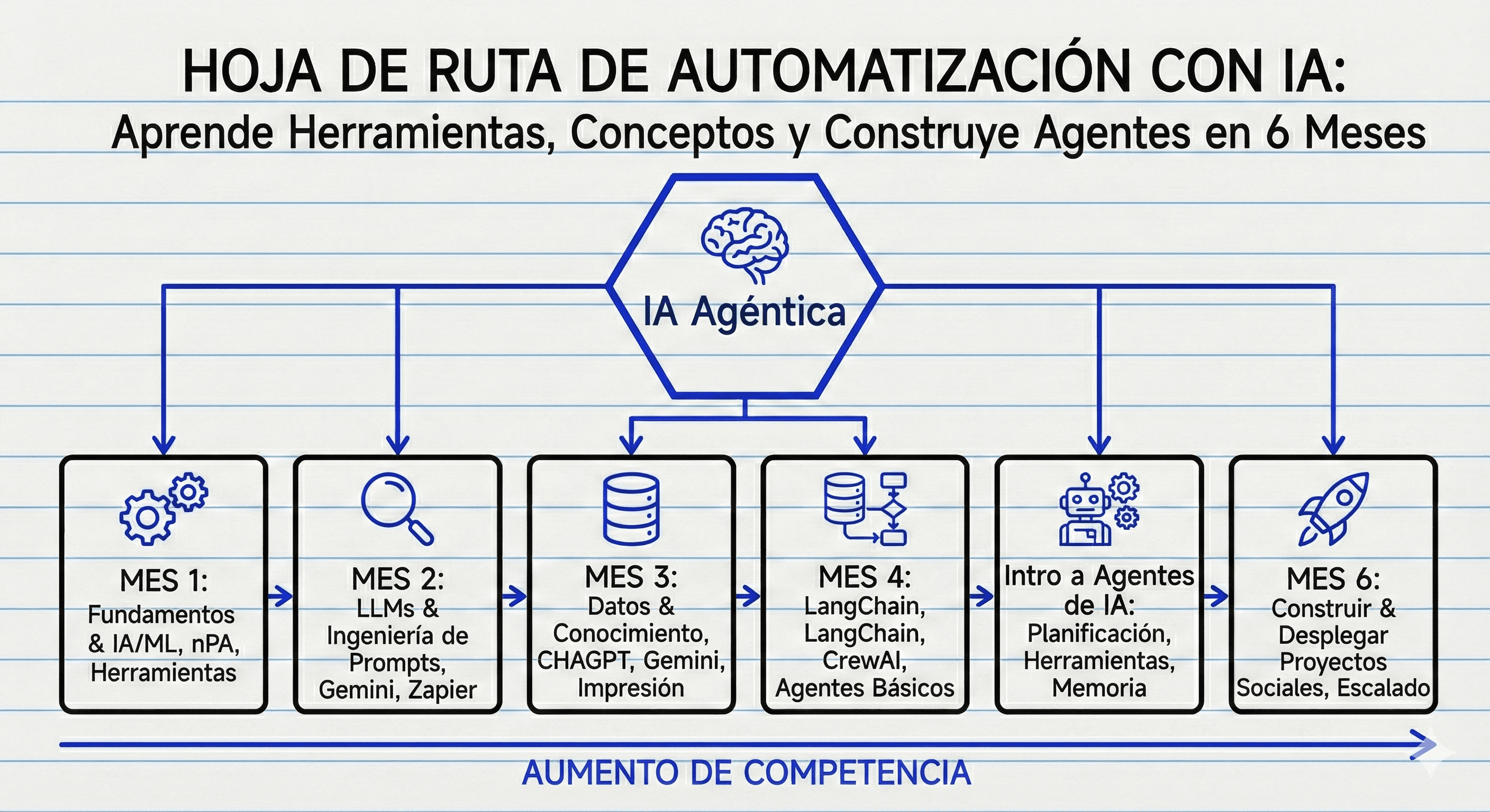 Ruta de Automatización con IA: Aprende Herramientas, Conceptos y Construye Agentes en 6 Meses